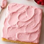 - Final mix and assemble: Scrape down the bowl once more and whip the buttercream for an additional 2 minutes to optimize texture. Spread the raspberry buttercream evenly over the cooled almond cake before serving.