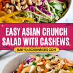 Getting the right mix of crunchy veggies and a bold dressing is key for this Asian Cashew Crunch Salad Recipe. I usually lean on pre-packaged kale slaw to save time, but the fresh flavors of the other veggies really bring everything together perfectly.