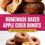This recipe for Baked Apple Cider Donuts features moist, cakey donuts infused with intensely flavored apple cider reduction. These warm donuts are coated in a spiced cinnamon sugar and apple pie spice mix, making them a delightful fall treat perfect for breakfast or dessert.