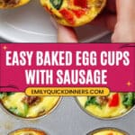 I like topping these egg cups with a sprinkle of fresh chopped parsley or scallions—the fresh flavor balances the richness of the sausage. Sometimes I add a little hot sauce or a smear of avocado for creaminess and a mild kick.