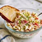 - Shred the chicken: Shred the baked chicken breasts either by hand or using a stand mixer with a paddle attachment—add the garlic cloves while shredding to distribute flavor evenly. Return the shredded chicken to the pasta and stir to combine well.