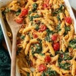 - Cook Pasta and Wilt Spinach: While the feta and tomatoes bake, bring a large pot of salted water (about 3 to 4 quarts with 1 tablespoon salt) to boil. Cook the pasta according to package instructions until al dente. Reserve 1/2 cup of the pasta cooking water. Right before draining, add the chopped spinach into the boiling water with the pasta to wilt it quickly, then drain both together.