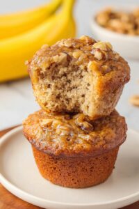 Yes! Baking powder and baking soda work together to ensure your muffins rise well and have a tender crumb. The baking soda reacts with the acidic components like bananas for lift, while baking powder adds extra rise without altering the flavor.