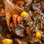 - Add vegetables and seasoning: Top the mixture with the peeled and cubed carrots and potatoes, Worcestershire sauce, fresh thyme leaves, bay leaves, brown sugar, salt, and a cornstarch slurry (cornstarch mixed with a bit of water). Pour in the Guinness or stout to integrate all flavors.