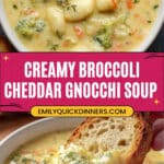 - Broccoli Cheddar Gnocchi Soup beautifully blends classic broccoli cheese flavors with the comforting texture of gnocchi, making it a hearty meal for any season.