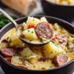 Warm up with this hearty Cajun Potato Soup featuring smoky andouille sausage, tender potatoes, and a creamy, spiced broth. Perfectly seasoned with Cajun spices and finished with cheddar cheese and cream, this comforting soup is ideal for cold days or whenever cravings for bold flavors strike.
