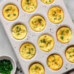 - Fill Muffin Cups: Pour the blended egg mixture evenly into the prepared muffin cups, filling each about halfway. Sprinkle the top with the chopped fresh chives. At this stage, you can also add your choice of mix-ins such as diced vegetables or cooked bacon if desired.