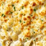 This creamy and cheesy Alfredo Tortellini Bake is a comforting Italian-inspired casserole featuring tender cheese tortellini smothered in a rich homemade Alfredo sauce, then topped with mozzarella and parmesan cheese and baked to golden perfection.