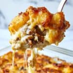 Cheeseburger Tater Tot Casserole is a hearty and comforting dish that combines savory ground beef, creamy cheddar soup mixture, and crispy tater tots baked to golden perfection. This easy-to-make casserole is perfect for family dinners and can be customized with additional veggies or spices to suit your taste.