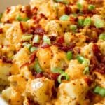 - Add Toppings: Remove the casserole from the oven and evenly sprinkle shredded cheddar cheese, crumbled bacon, and sliced green onions over the top.