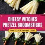 If you have any leftover broomsticks (which honestly is rare), store them in an airtight container in the fridge for up to 24 hours. The cheese can get a bit firm, so I recommend enjoying them fresh for best texture and flavor.