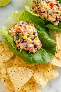 I usually serve it right away with crunchy romaine lettuce leaves for scooping and a side of tortilla chips. It makes it feel like a casual, festive meal. That said, it’s just as fantastic chilled for lunch the next day.
