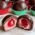 Delightfully indulgent homemade Chocolate Covered Cherries featuring maraschino cherries wrapped in a smooth fondant dough and dipped in a rich, dual-chocolate coating. Perfect for gifting or special occasions, these confectioneries form a luscious liquid center over time, creating the ultimate cherry cordial experience.