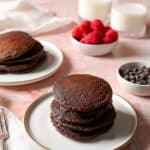 These Chocolate Pancakes with Chocolate Chips are a deliciously rich and fluffy breakfast treat that combines cocoa powder and melted chocolate chips in the batter for an extra chocolatey flavor. Perfectly tender and studded with melty chocolate chips, they are easy to make on the stovetop and can be enjoyed with butter, maple syrup, and fresh fruit toppings.