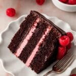 This decadent Chocolate Raspberry Cake features moist chocolate layers paired with a tart raspberry puree and fluffy raspberry frosting, finished with a rich chocolate ganache and fresh raspberry decoration. Perfect for special occasions, this elegant cake combines classic chocolate flavor with vibrant raspberry accents for a show-stopping dessert.