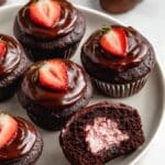 Delightfully rich chocolate covered strawberry cupcakes featuring moist chocolate cupcakes filled with a luscious strawberry buttercream and topped with a silky chocolate ganache. Perfect for special occasions or an indulgent treat, these cupcakes combine the deep flavor of cocoa with the bright sweetness of freeze-dried strawberries.