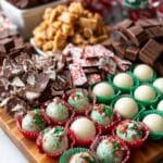 - Add Toppings: Immediately sprinkle the Christmas-colored M&M’s, sprinkles, and nonpareils generously over the white chocolate layer before it sets.