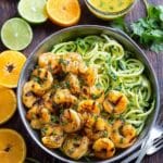 This refreshing Citrus Grilled Shrimp and Zoodles recipe features shrimp marinated in a zesty lime and orange dressing, grilled to perfection and served over lightly salted zucchini noodles. Perfect for a paleo or Whole30-compliant meal, it’s a light, flavorful dish that’s quick to prepare and ideal for warm weather dining.