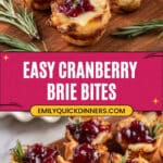 - Cranberry Brie Bites combine flaky crescent dough with creamy brie, tangy cranberry sauce, and fresh rosemary for an easy, beautiful appetizer.