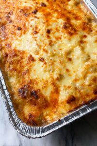 This creamy baked mac and cheese freezes well, which is great for meal prep. I freeze it in portions, tightly wrapped with plastic wrap and then foil to avoid freezer burn. When ready, thaw overnight in the fridge and bake at 325°F until warmed through and bubbly.