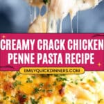 This Crack Chicken Penne recipe is a creamy, cheesy, and flavorful pasta dish featuring tender chicken, crispy bacon, and a rich blend of cream cheese, cheddar, and mozzarella. With a hint of Cajun spice and savory ranch seasoning, this comforting skillet meal is quick to prepare and perfect for a satisfying weeknight dinner.