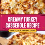 • This easy Turkey Casserole recipe is creamy, cheesy, and sure to be a hit with the whole family.