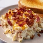 This Chicken Bacon Ranch Casserole is a comforting and flavorful baked dish that combines crispy bacon, tender chicken, creamy Alfredo sauce, and a blend of mozzarella and cheddar cheeses over perfectly cooked pasta. It’s seasoned with a zesty dry Ranch dressing mix and baked until bubbly and golden, making it a perfect family meal that is easy to prepare and delightfully satisfying.