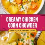 This hearty Chicken Corn Chowder combines tender chicken, fresh corn, and tender potatoes in a creamy, comforting broth. Blending some of the corn and mashing part of the potatoes gives the chowder a rich texture without the heaviness of cream. Perfect for a satisfying meal any time of the year.
