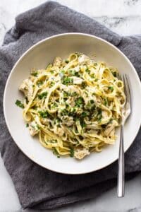 Absolutely! Just swap regular jumbo pasta shells with gluten-free pasta shells. The filling and sauce remain the same. Just check your Alfredo sauce ingredients to make sure they’re gluten-free too.