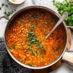 This hearty Italian Lentil Soup, or Zuppa di Lenticchie, is a comforting and nutritious dish featuring brown lentils simmered with aromatic vegetables, crushed tomatoes, and fragrant herbs. Enriched with a Parmesan rind for depth of flavor and finished with a fresh parsley garnish and a drizzle of extra virgin olive oil, this soup delivers traditional Italian flavors in a wholesome, satisfying bowl.
