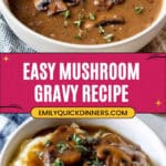 For special occasions, I love serving this mushroom gravy in a small gravy boat so everyone can drizzle as much as they like. Lining the edges of the plate with some roasted herb sprigs or edible flowers adds a festive touch. One Thanksgiving, I poured it over a wild rice and mushroom stuffing, and it got rave reviews from everyone!