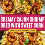 This One Pan Creamed Corn Orzo with Shrimp is a delicious and creamy skillet meal combining tender shrimp seasoned with Cajun spices, sweet fresh corn, and tender orzo pasta cooked in a rich coconut milk and vegetable broth base. The dish is bursting with bold flavors from poblano pepper, garlic, and fresh herbs like thyme and basil, making it a quick and satisfying dinner that’s easy to prepare in just one pan.