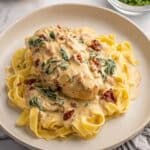 This Crockpot Tuscan Chicken recipe features tender boneless, skinless chicken breasts slow-cooked in a rich and creamy Tuscan sauce made with heavy cream, sun-dried tomatoes, garlic, Parmesan cheese, and fresh spinach. It’s a comforting, flavorful dish perfect for an easy weeknight meal or meal prep with minimal hands-on time.