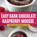 I love experimenting with this Dark Chocolate Raspberry Mousse Cakes Recipe depending on the season or occasion. You can easily make it your own by switching up flavor accents or adding your favorite mix-ins.