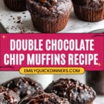 These Double Chocolate Chip Muffins are indulgently rich and perfectly moist, packed with cocoa powder and chocolate chips for an extra chocolaty punch. Easy to make, they bake up with a tender crumb and a beautifully domed top, making them a perfect treat for breakfast, snack time, or dessert.