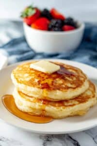 Absolutely! Buttermilk adds a wonderful tangy flavor and helps tenderize the pancakes further, resulting in even fluffier, richer pancakes. Just keep in mind that you might need to reduce or omit the baking powder slightly since buttermilk is acidic and reacts with baking soda if you decide to add it.