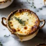 This Easy French Onion Soup recipe delivers a rich, deeply flavorful classic French comfort food with caramelized onions, savory beef broth, crusty toasted baguette, and a gooey melted Gruyere cheese topping. Perfect for a cozy meal, it’s simple to make and guaranteed to impress with its authentic taste.