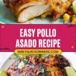 This best Pollo Asado recipe features tender and flavorful Mexican-style grilled chicken marinated in a zesty blend of orange juice, lime juice, garlic, achiote, and spices. You can grill the chicken over direct and indirect heat for a perfect char and juicy interior or roast it in the oven for equally delicious results. Served with optional lime wedges and fresh cilantro, this vibrant and easy dish is ideal for a flavorful weeknight dinner or weekend cookout.