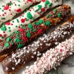 These festive Christmas Pretzel Rods are a delightful combination of crunchy pretzels dipped in colorful candy coatings and topped with assorted holiday sprinkles. Perfect for holiday parties or gifting, they combine sweet and salty flavors with a visually appealing presentation that captures the spirit of the season.