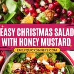 A festive and vibrant Christmas Salad featuring mixed greens, sweet mandarin oranges, tart pomegranate arils, crunchy candied nuts, and tangy feta cheese, all tossed in a flavorful honey mustard dressing. This refreshing salad is perfect for holiday gatherings and adds a colorful, healthy touch to your Christmas table.