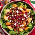 A festive and vibrant Christmas Salad featuring mixed greens, sweet mandarin oranges, tart pomegranate arils, crunchy candied nuts, and tangy feta cheese, all tossed in a flavorful honey mustard dressing. This refreshing salad is perfect for holiday gatherings and adds a colorful, healthy touch to your Christmas table.