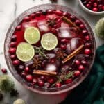 This festive Christmas Punch is a vibrant, non-alcoholic holiday beverage bursting with flavors of cranberry, orange, and warming spices like cinnamon and star anise. Perfectly balanced with the fizz of ginger ale and fresh herbaceous notes from thyme, this refreshing punch is ideal for holiday gatherings, offering a delightful and colorful drink that everyone can enjoy.