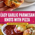 These Garlic Knots with Parmesan are a quick and delicious appetizer or side made from canned pizza dough. Soft, buttery knots are infused with garlic, oregano, and parsley, then sprinkled with freshly grated Parmesan cheese and baked to golden perfection. Perfect for serving with marinara sauce or enjoying on their own.