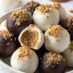 These Gingerbread Truffles are a festive, no-bake treat perfect for the holiday season. Combining crunchy gingersnap crumbs with creamy vanilla-flavored cream cheese, these truffles are dipped in rich white and dark chocolate, then garnished with crushed cookies for an extra crunch. They make a delightful, easy-to-make dessert or gift that can be stored in the refrigerator or freezer.