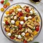 This Grilled Chicken Caprese Pasta Salad is a vibrant and flavorful dish featuring marinated and grilled chicken, fresh mozzarella, juicy tomatoes, and fragrant basil tossed with spiral pasta. A balsamic vinaigrette ties all the ingredients together, creating a perfect summer meal that’s great for potlucks or light dinners.