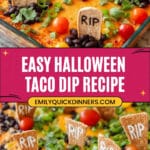 Leftover Halloween Taco Dip keeps really well in an airtight container in the fridge for up to 3 days. I always remove the tortilla tombstones before storing so they don’t get soggy. When you’re ready to enjoy leftovers, give the dip a quick stir to freshen it up.