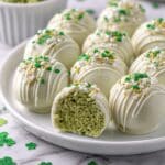 These Healthy St. Patrick’s Day Truffles are a delightful, guilt-free treat featuring vibrant matcha centers coated in creamy white chocolate and adorned with festive toppings. Perfect for celebrating the holiday with a nutritious twist, these truffles combine almond flour, matcha powder, and natural sweeteners to create a soft, flavorful filling, then are dipped in a smooth white chocolate coating and chilled to perfection.