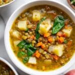 - Simmer the Soup: Bring the mixture to a boil, then reduce the heat to low, cover, and let it simmer gently for about 35-40 minutes or until the lentils and potatoes are tender.
