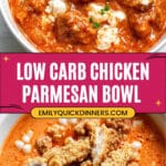 - Serve: Serve the chicken parm bowl immediately while hot. Enjoy a comforting, protein-rich meal with minimal carbs.