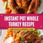 My go-to sides with this Instant Pot Whole Turkey Recipe are roasted garlic mashed potatoes, green beans almondine, and a tangy cranberry sauce. The creaminess and freshness balance out the tender turkey perfectly. You can’t go wrong with classic holiday fixings here—comfort on every plate!